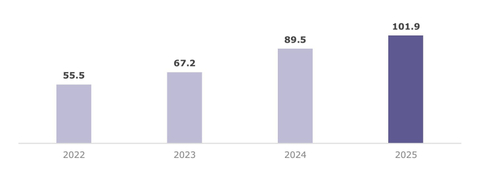 После активного роста в период 2023–2024 гг. динамика роста стабилизировалась, и в 2025 год рынок вырос на 13,9 % до 101,9 млрд руб. Согласно прогнозу, в период с 2025 по 2032 годы среднегодовой рост рынка СУБД составит 15,6 %, что выше роста глобального рынка, а также российского ИТ-сектора (12,5 % в год до 2030 года). Объём рынка СУБД к 2032 году составит 281 млрд руб.