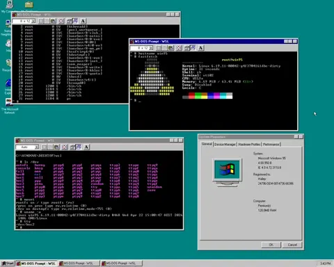 Независимый разработчик создал проект WSL9x, который расшифровывается как Windows 9x Subsystem for Linux. Этот инструментарий позволяет запускать современные ядра Linux внутри операционных систем Windows 95, Windows 98 и Windows ME. Проект дает возможность в 1 системе совместно выполнять приложения для Linux и Windows 9x. Это работает по аналогии с прослойкой WSL в современных версиях Windows. На данный момент поддерживается запуск только консольных программ. Код написан на языках Си и ассемблере и распространяется под лицензией GPLv3.