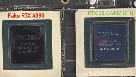 Главная хитрость заключается в обработке чипов. Злоумышленники взяли неисправный графический процессор (предположительно от старой RTX 3090 Ti или 3090) и чипы памяти GDDR6X, после чего буквально «сбрили» верхний слой кремния с оригинальной маркировкой. С помощью прецизионной лазерной гравировки на чипы были нанесены новые серийные номера и логотипы, полностью соответствующие спецификациям RTX 4090. Даже под микроскопом такая подделка выглядит крайне убедительно — маркировка AD102-300-A1 и логотипы NVIDIA нанесены настолько чисто, что не вызывают подозрений.